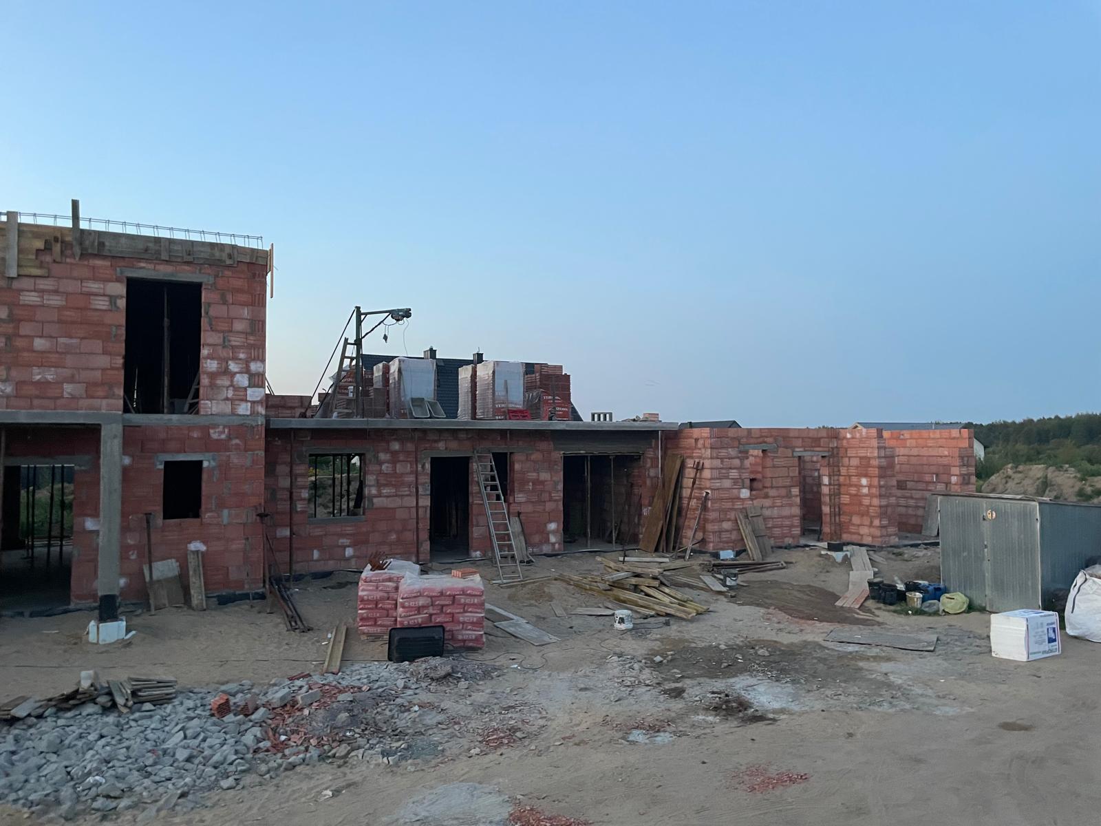 Zakończyliśmy murowanie piętra w segmencie S4. Na świeżo powstałe ściany został wylany żelbetowy strop, który domyka konstrukcję i przygotowuje budynek do dalszych prac wykończeniowych oraz konstrukcyjnych dachu.